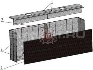1 - Сборный корпус из оцинкованной стали с большим количеством продольных, поперечных и вертикальных ребер жесткости. Обеспечивает долговечность эксплуатации и снижение вибрации в процессе работы.