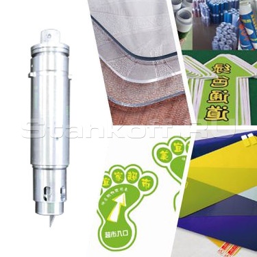 В основном используется для резки виниловых материалов (этикеток). Предназначен для создания надсечки на самоклеющейся бумаге. Нож прорезает только верхний слой материала, оставляя подложку целой. Высокоскоростная резка.Пневматический нож