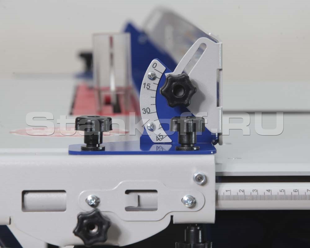 Станок оснащен обновленной комбинированной линейкой, которая включает в себя параллельный и угловой упоры. Все шкалы на неё нанесены струйным способом с последующим лазерным отверждением.